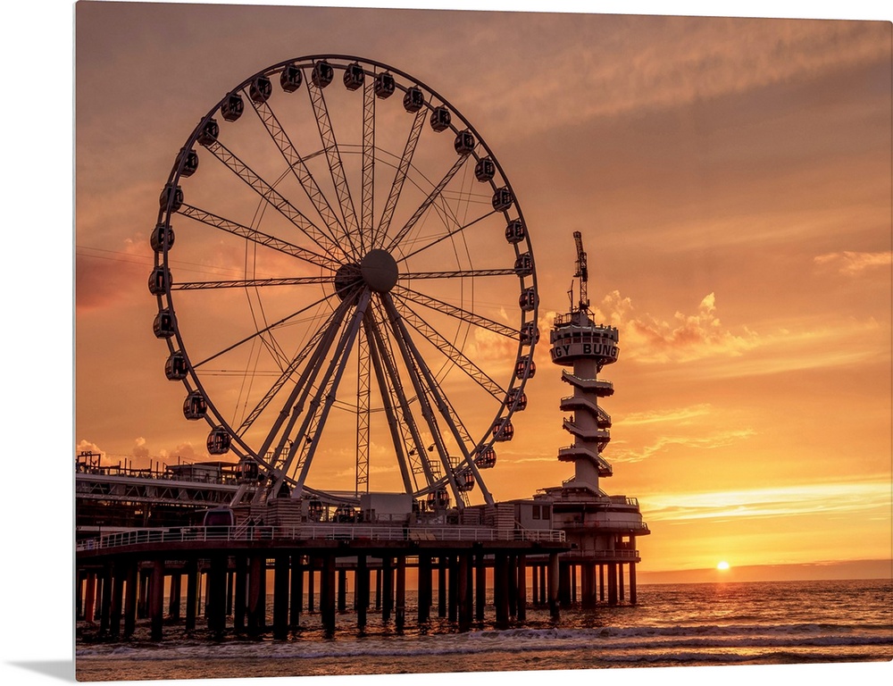 <p>Pier And Ferris Wheel In Scheveningen, Sunset, The Hague, South Holland, The Netherlands</p>