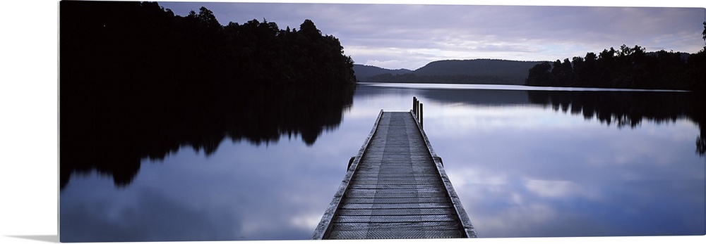 <p>Pier in a lake, Lake Mapourika, South Island, New Zealand</p>