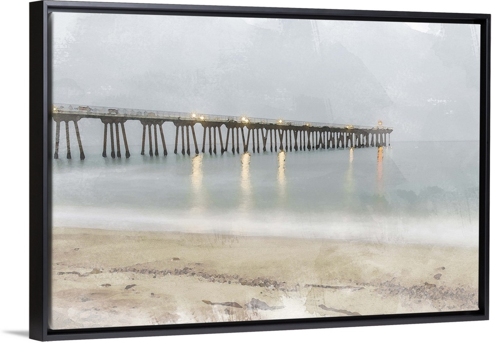 <p>An abstract of a pier and the shore with muted colors.</p>