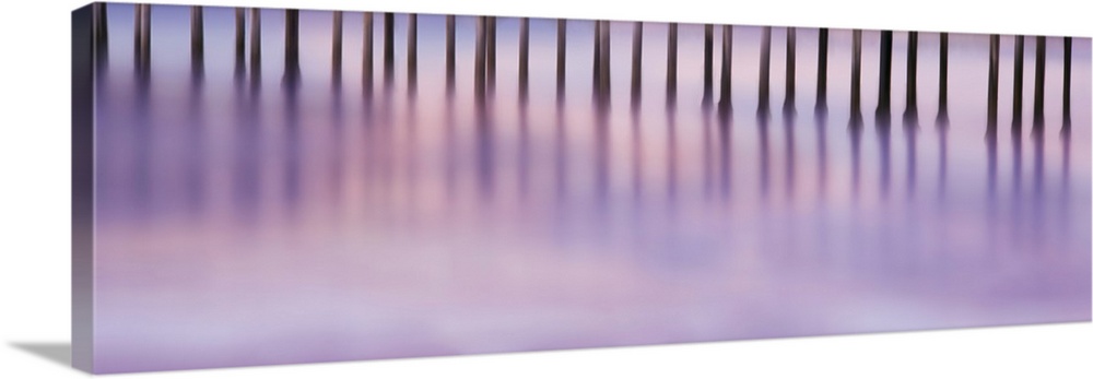 <p>Pier Pilings protude from a pastel sea at Gaviota State Beach, Gaviota, California, USA.</p>