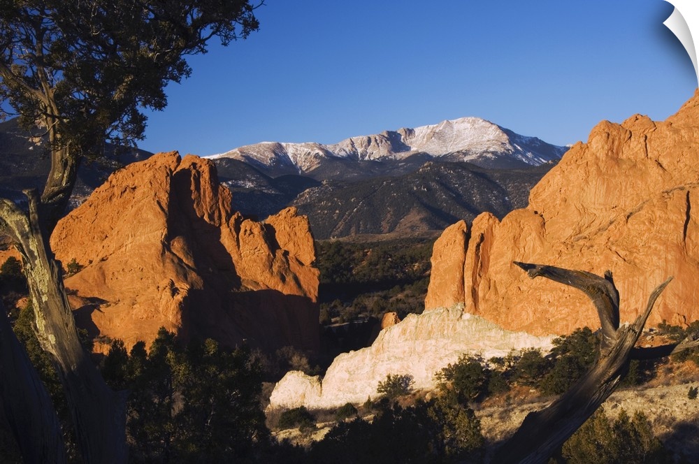 <p>Rock formation and Pikes Peak at Sunrise, Garden of The Gods National Landmark, Colorado Springs, Colorado, USA, February 2006</p>