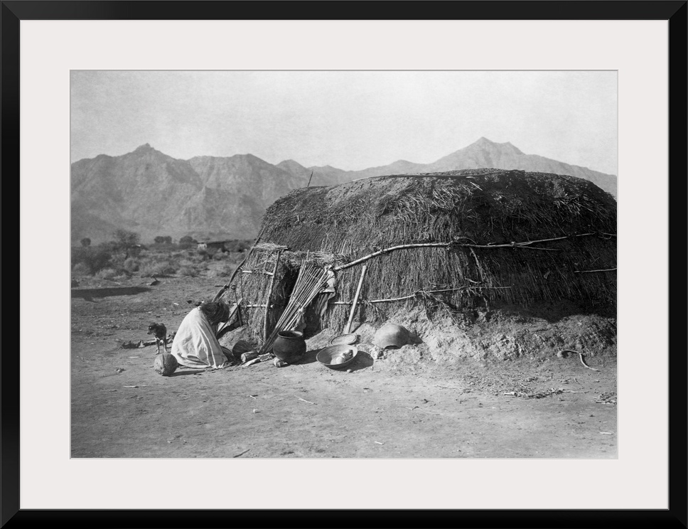 <p>A photograph of a Pima round dwelling, or ki, published in a portfolio supplementing Volume II of The North American Indian (1908) by Edward S. Curtis.</p>