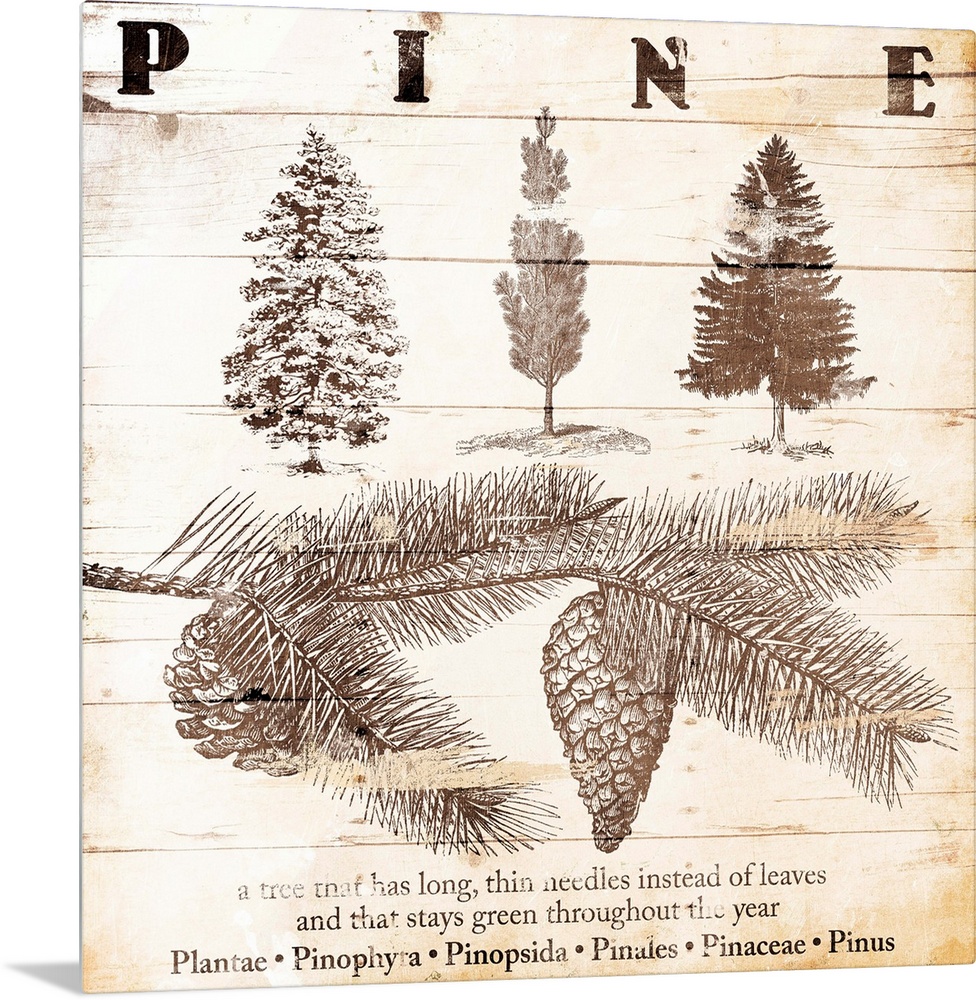 <p>Cabin home decor of pine tree details in a scientific illustration style.</p>