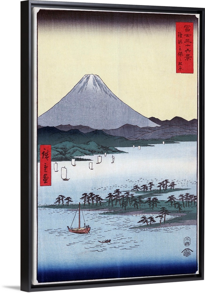 <p>Hiroshige, Suruga, C1850. Pine Groves And Mount Fuji On Miho Bay In Suruga Province, Japan. Woodcut By Ando Hiroshige, C1850.</p>