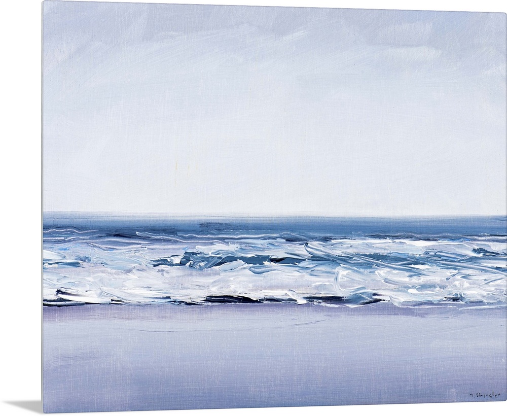 <p>Contemporary painting of a view starring out at the sea from a beach.</p>
