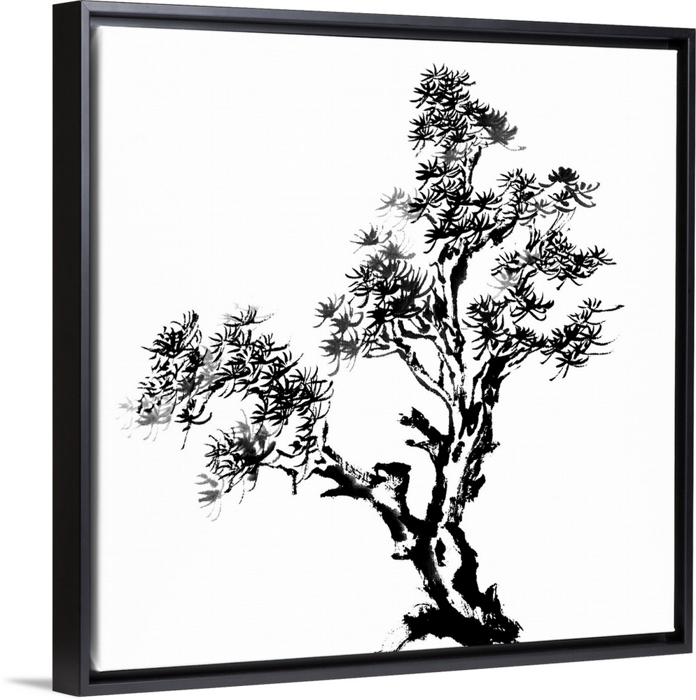 <p>Chinese traditional ink painting, pine tree on white background.</p>