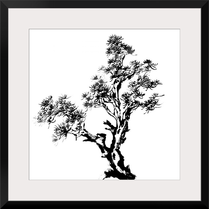 <p>Chinese traditional ink painting, pine tree on white background.</p>