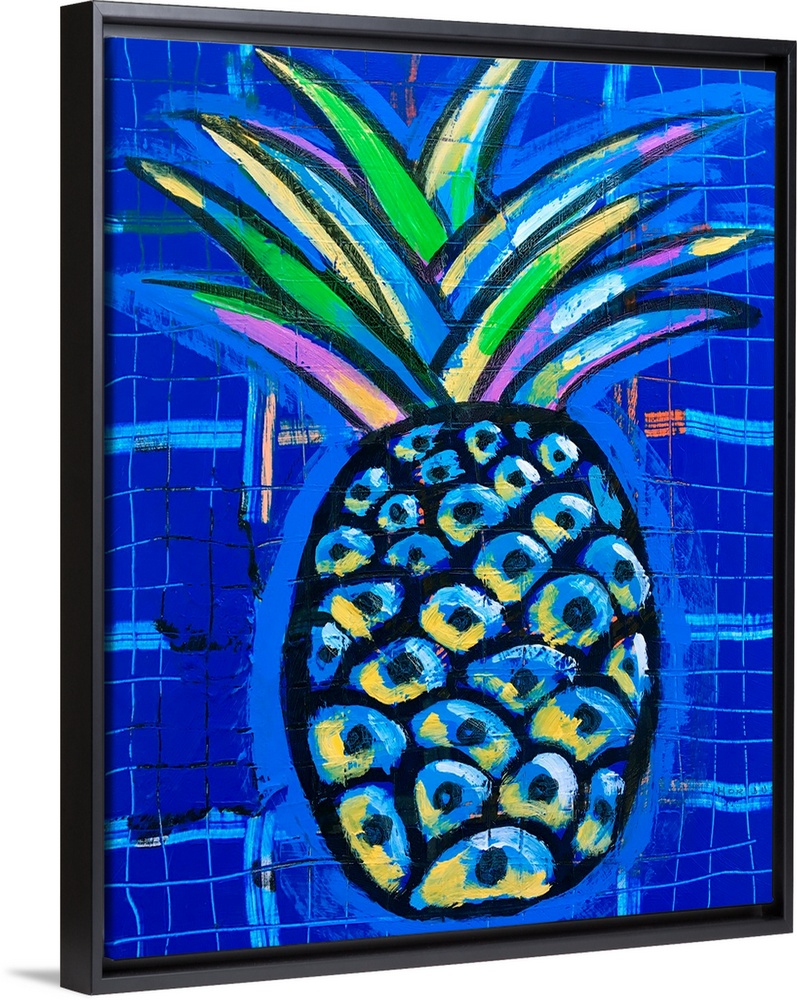 <p>Pineapple painted in vibrant multi-colors on a midnight blue background.</p>