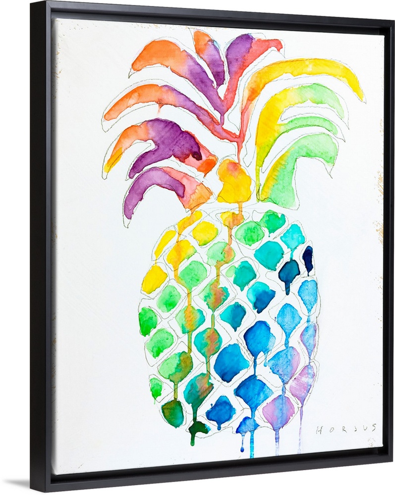 <p>Pineapple with drippy watercolor rainbow colors and patterns on its body and leaves.</p>
