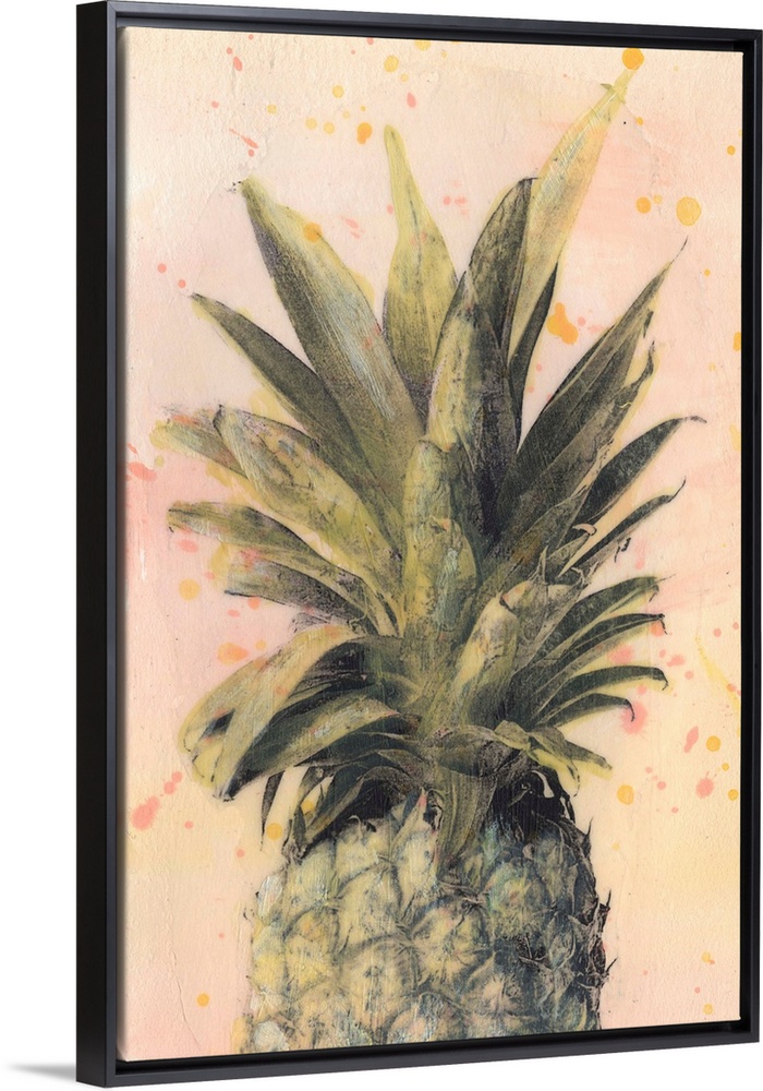 <p>Contemporary rustic artwork of a pineapple against a beige background.</p>