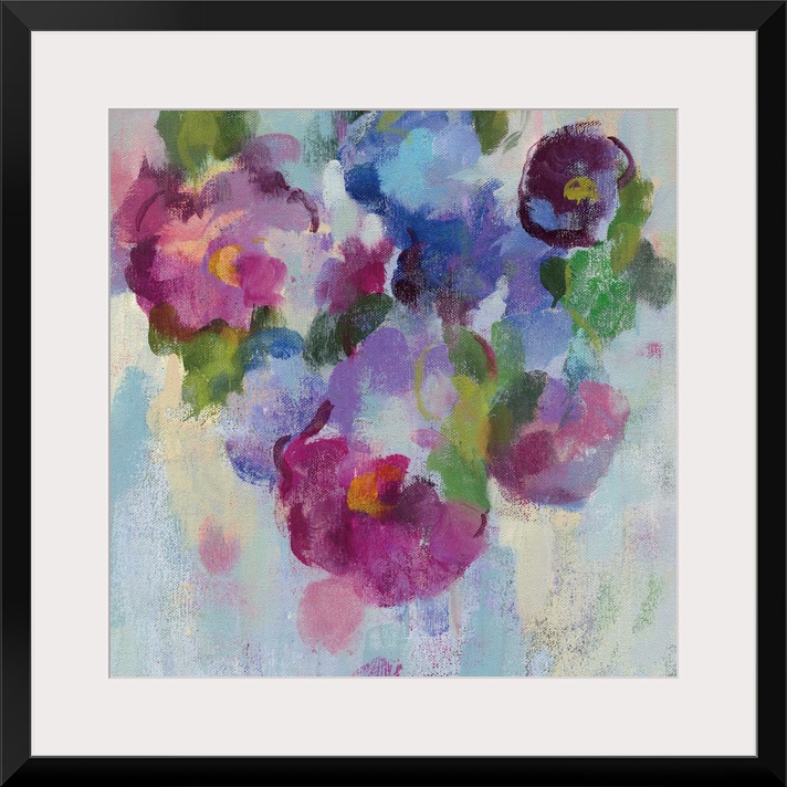 <p>Contemporary painting of blooming flowers in purple and pink.</p>
