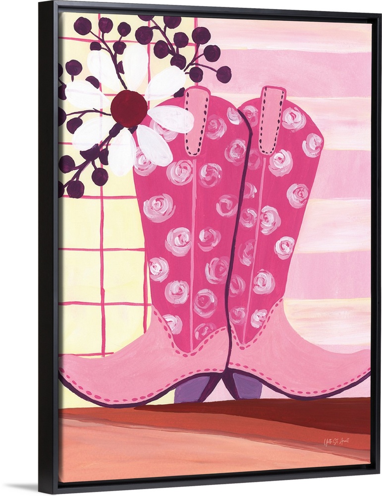 Art Howdy Cowgirl Decorative Art Fashion And Beauty Shoes Painting Pink Wall Art Yvette St. Amant