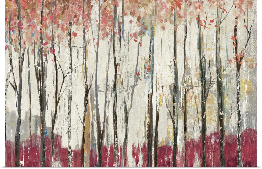 <p>Contemporary home decor artwork of a red forest.</p>