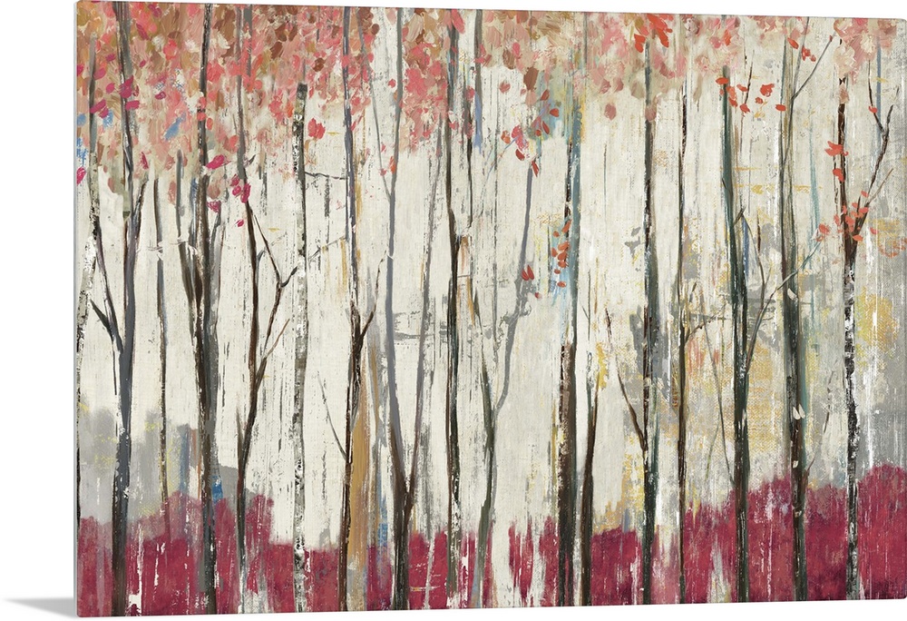 <p>Contemporary home decor artwork of a red forest.</p>