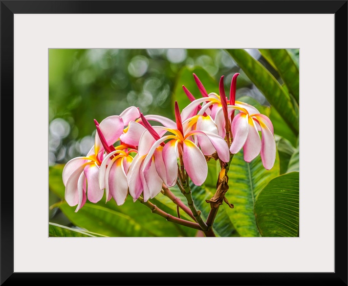 <p>Pink frangipani plumeria, Waikiki, Honolulu, Hawaii. Plumeria flowers make fragrant beautiful leis.</p>