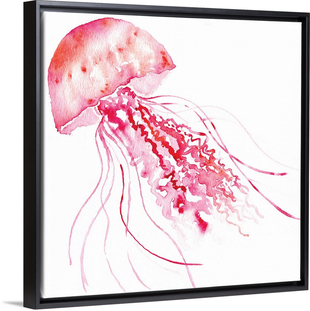 <p>Watercolor painting of a pink jellyfish with long tentacles.</p>