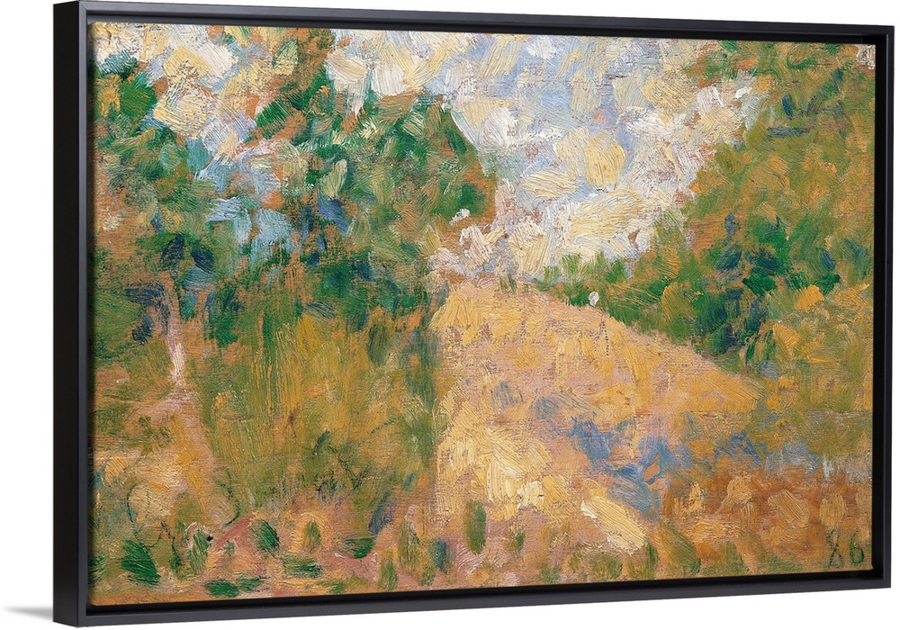<p>Pink Landscape, by Georges Seurat, 1886, 19th Century, oil on canvas, cm 15,5 x 24,5 - France, Ile de France, Paris, Muse dOrsay, RF1965-18. All. Landscape trees green yellow azure light blue sky clouds. (273065) Everett Collection\Mondadori Portfolio</p>