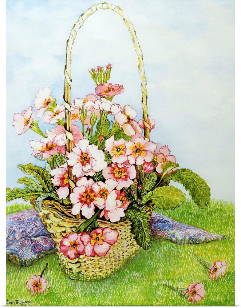 <p>Pink Primroses in a Florist's Basket with a Paisley Scarf, 2010, originally watercolor on paper.</p>