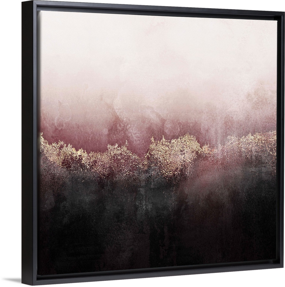 <p>Contemporary, square abstract design in shades of rose gold, gold and dark grey, with bands of color appearing to merge horizontally across the picture.</p>