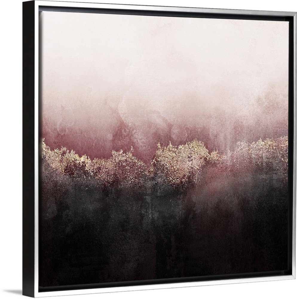 <p>Contemporary, square abstract design in shades of rose gold, gold and dark grey, with bands of color appearing to merge horizontally across the picture.</p>