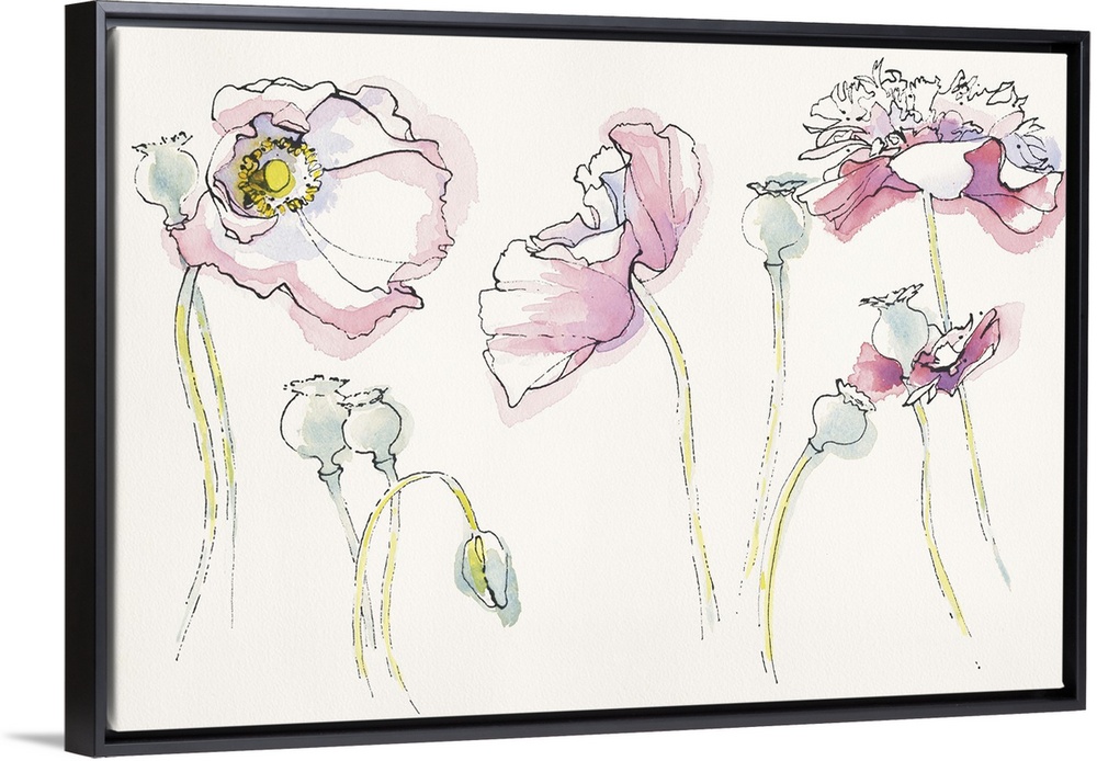 Art Transitional Contemporary Art Plants and Flowers Poppy Shirley Novak Painting Pink Wall Art Blush Pink Watercolor
