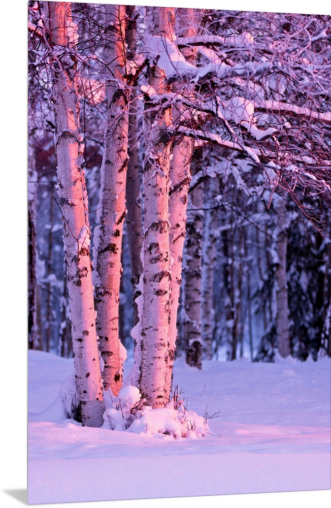 <p>A photo of the sunset light falling on tree trunks of a birch, winter, Russian Jack Springs Park, Anchorage, Southcentral Alaska, USA.</p>