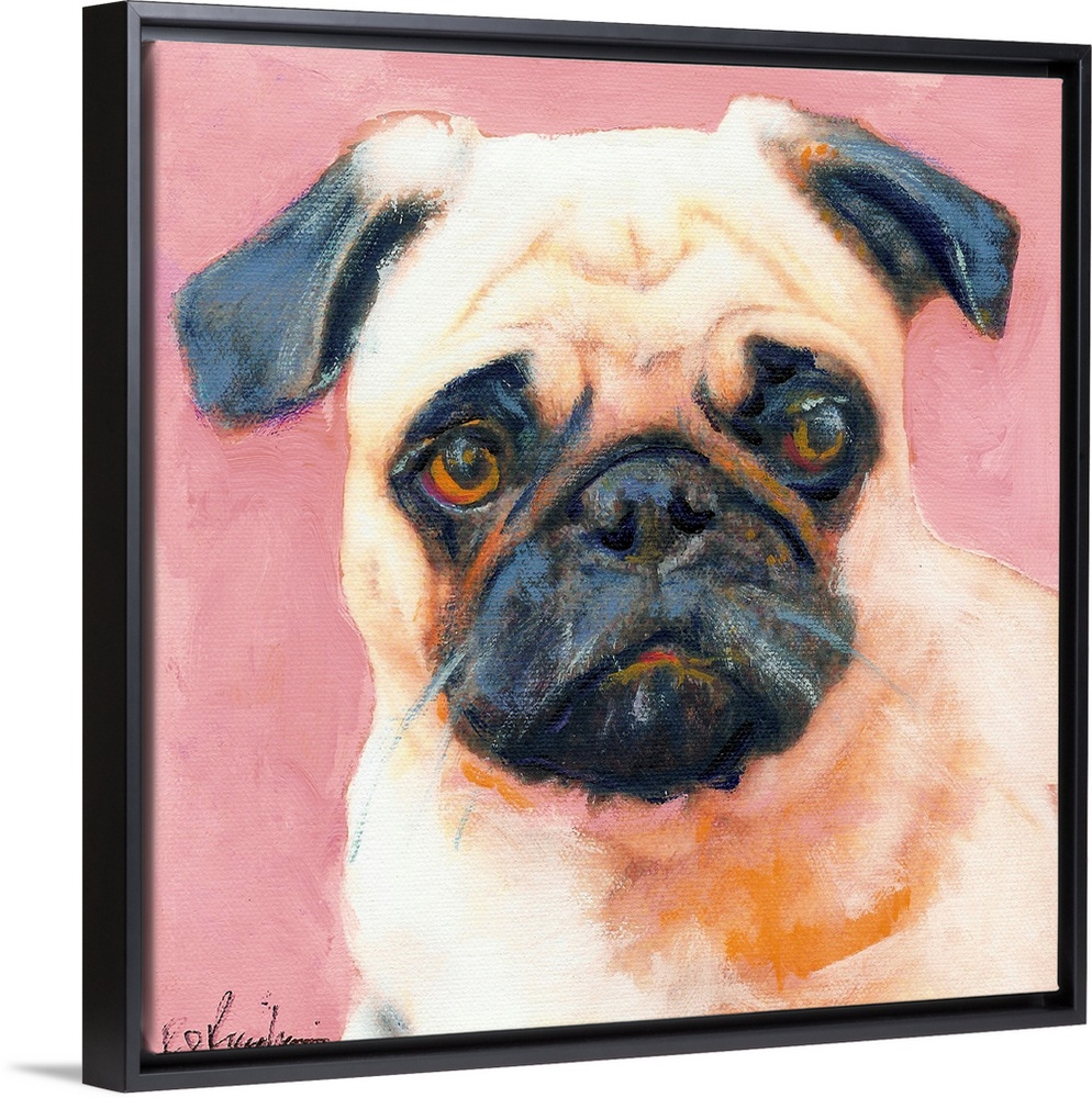 <p>Square painting of a Pug puppy on a pink background.</p>