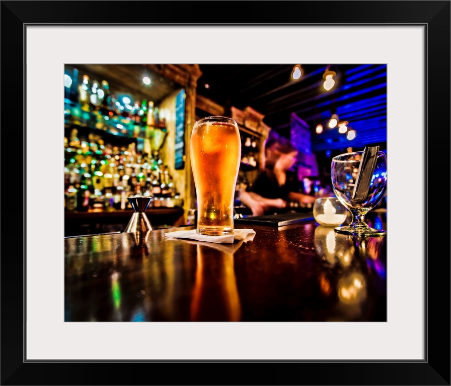 <p>Pint of beer on a bar in a traditional style pub.</p>