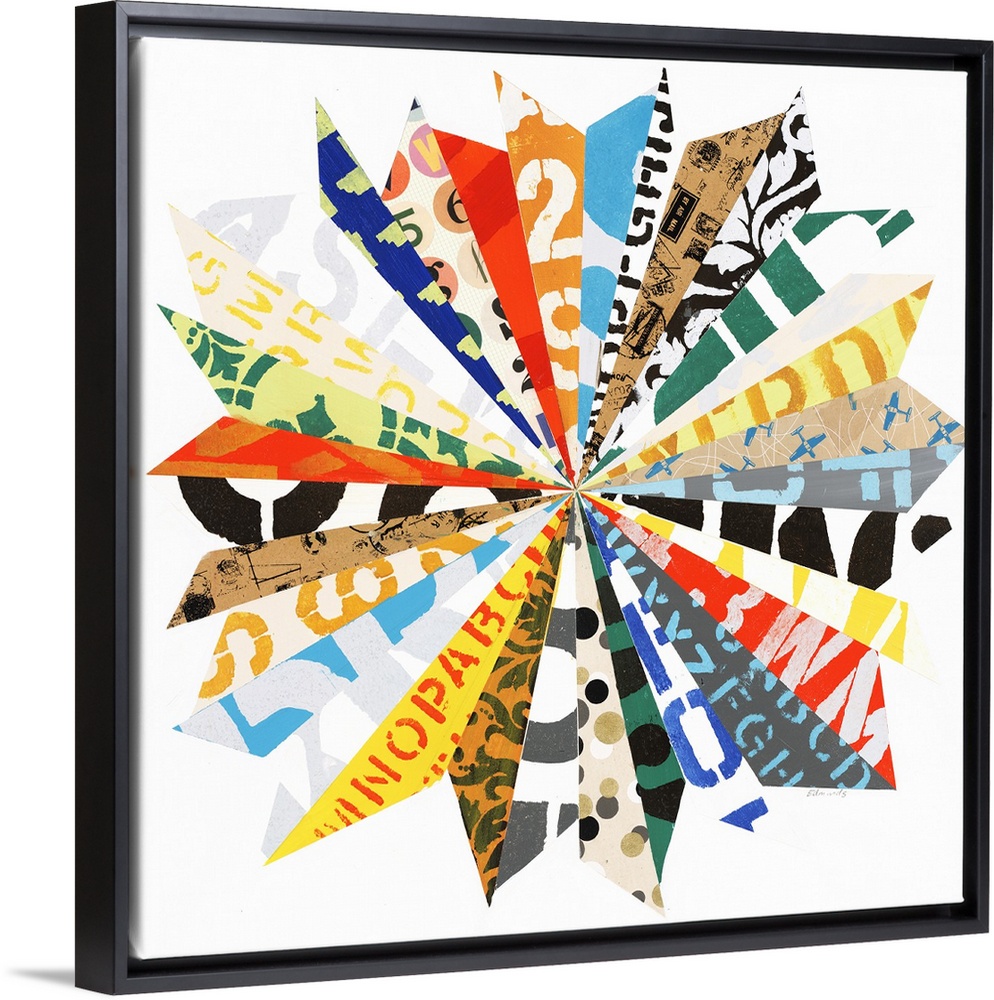 <p>Contemporary abstract painting of a flower made of different paper clippings.</p>