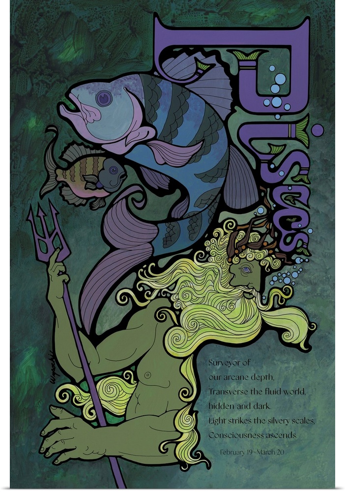Art Astrology Art Deco Graphic Art Green Wall Art Typography & Calligraphy Wildlife Marine Life Fish Harry Wysocki