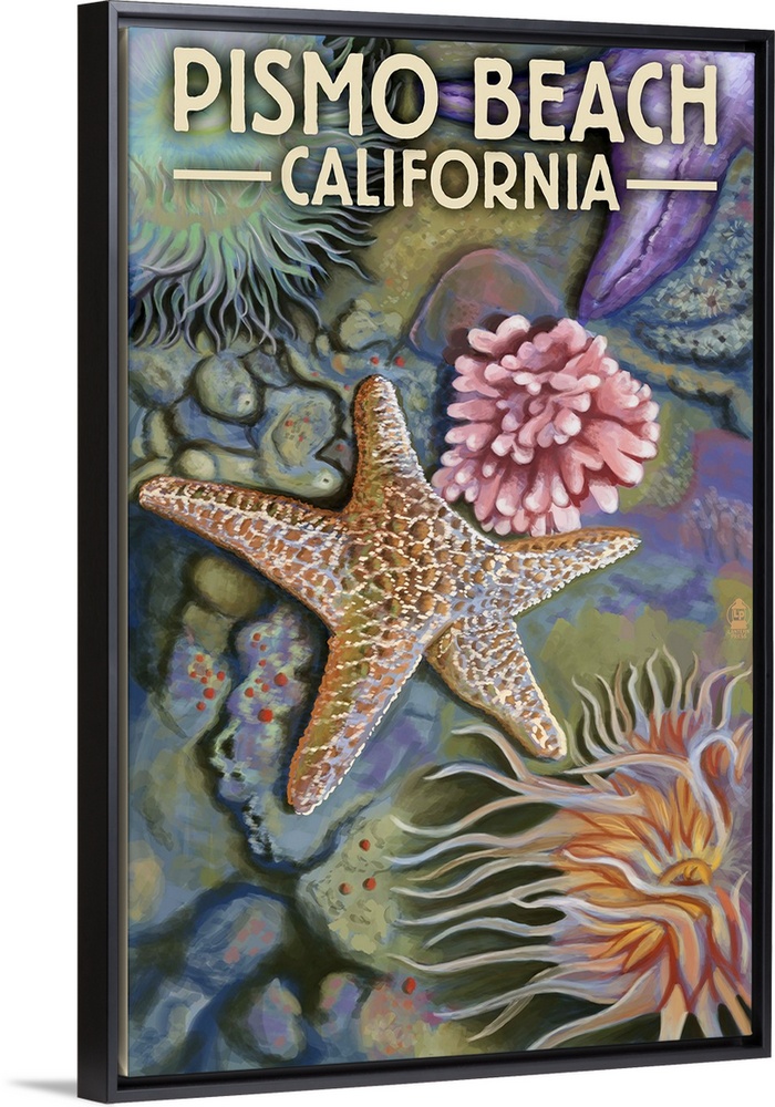 <p>Retro stylized art poster of a starfish and various marine life in a tide pool.</p>
