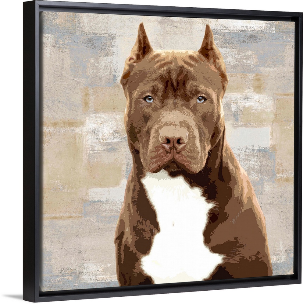 <p>Square decor with a portrait of a Pitbull on a layered gray, blue, and tan background.</p>