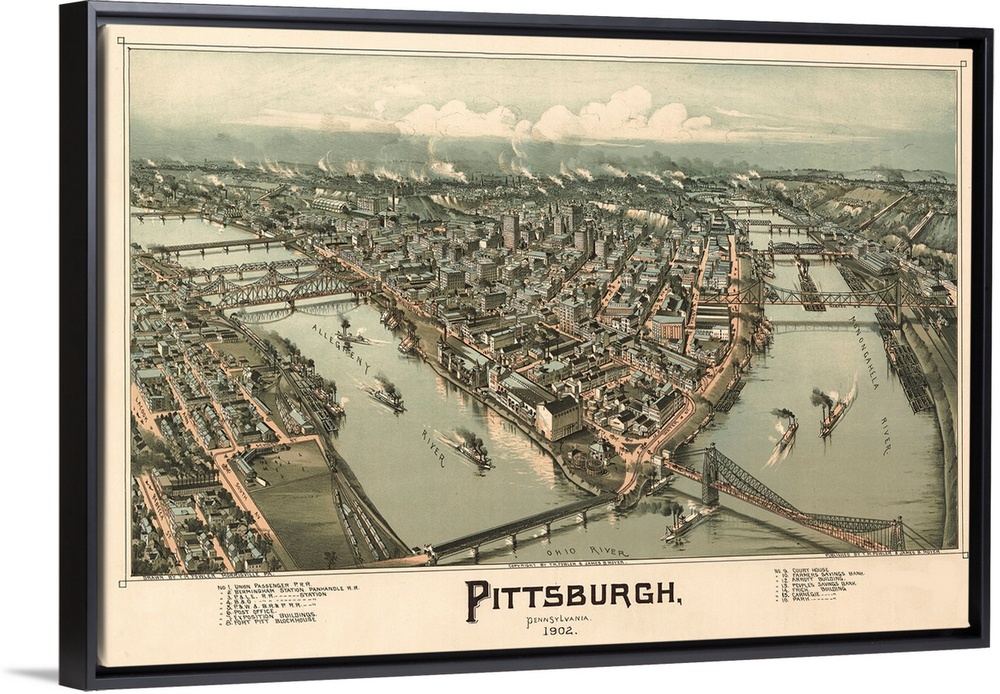 Art Graphic Art Maps Antique Maps Maps by City Pittsburgh Vintage Art