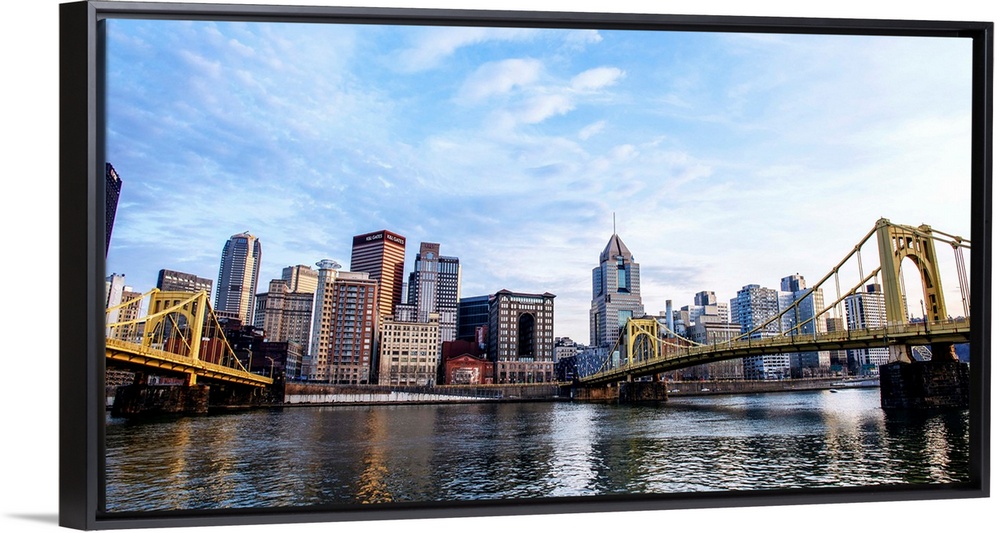 <p>Photo of downtown Pittsburgh with Roberto Clemente Bridge over the Allegheny River.</p>