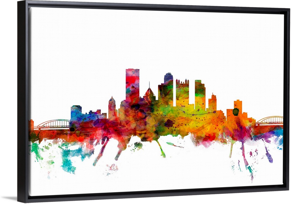 <p>Watercolor artwork of the Pittsburgh skyline against a white background.</p>