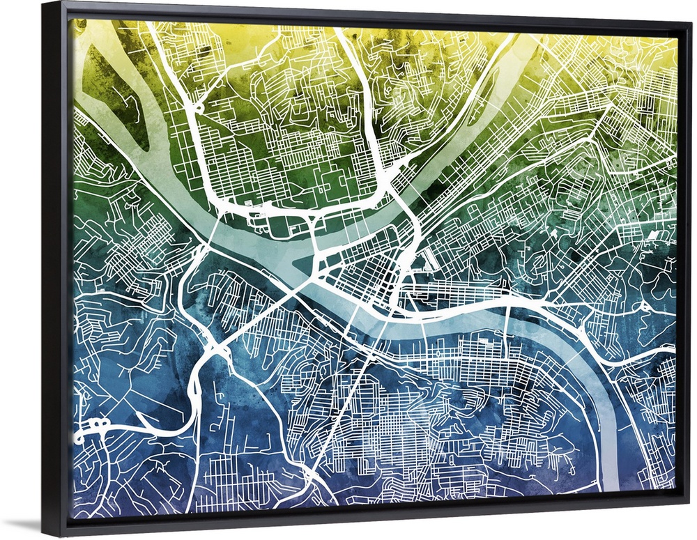Maps Art Maps Maps by City Street Maps Painting Pennsylvania Pittsburgh Michael Tompsett Watercolor