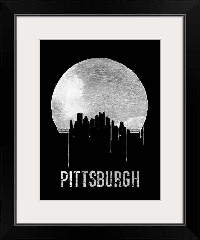 <p>Contemporary watercolor artwork of the Pittsburgh city skyline, in silhouette.</p>