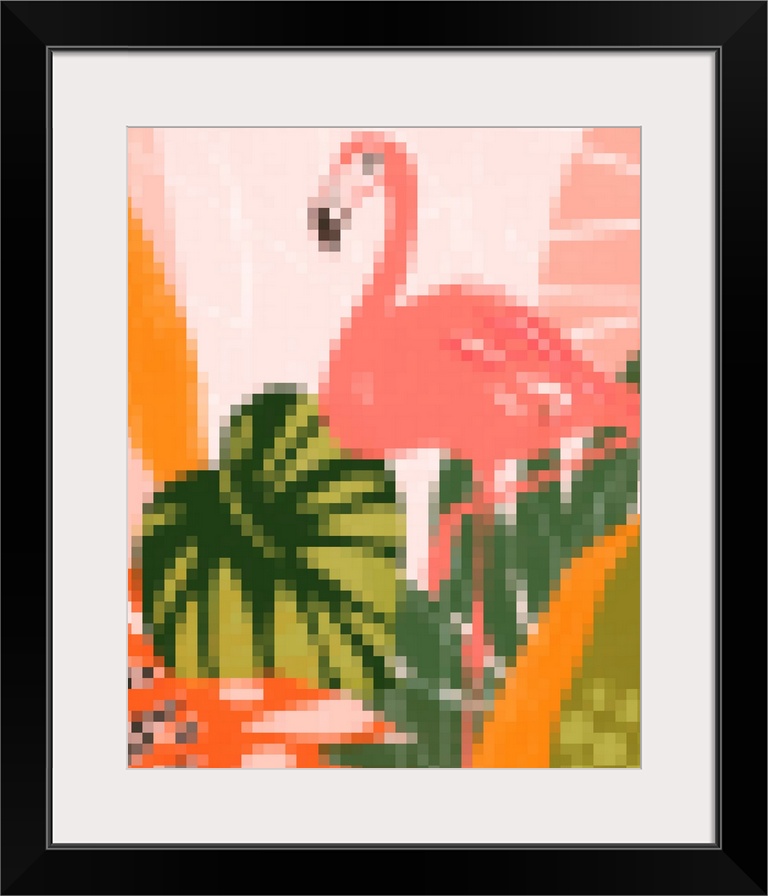 Art Decorative Art Florals Leaves Graphic Art Pink Wall Art Pixel Art June Erica Vess Wildlife Bird Flamingo
