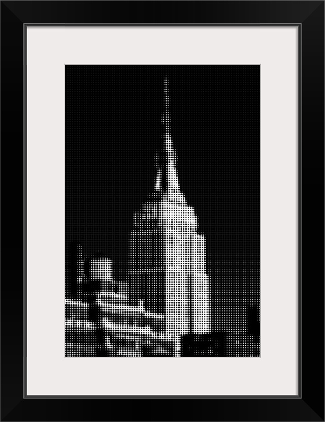 <p>Artistic photograph of the Empire state building with a black and white pixel grain filter over the image.</p>