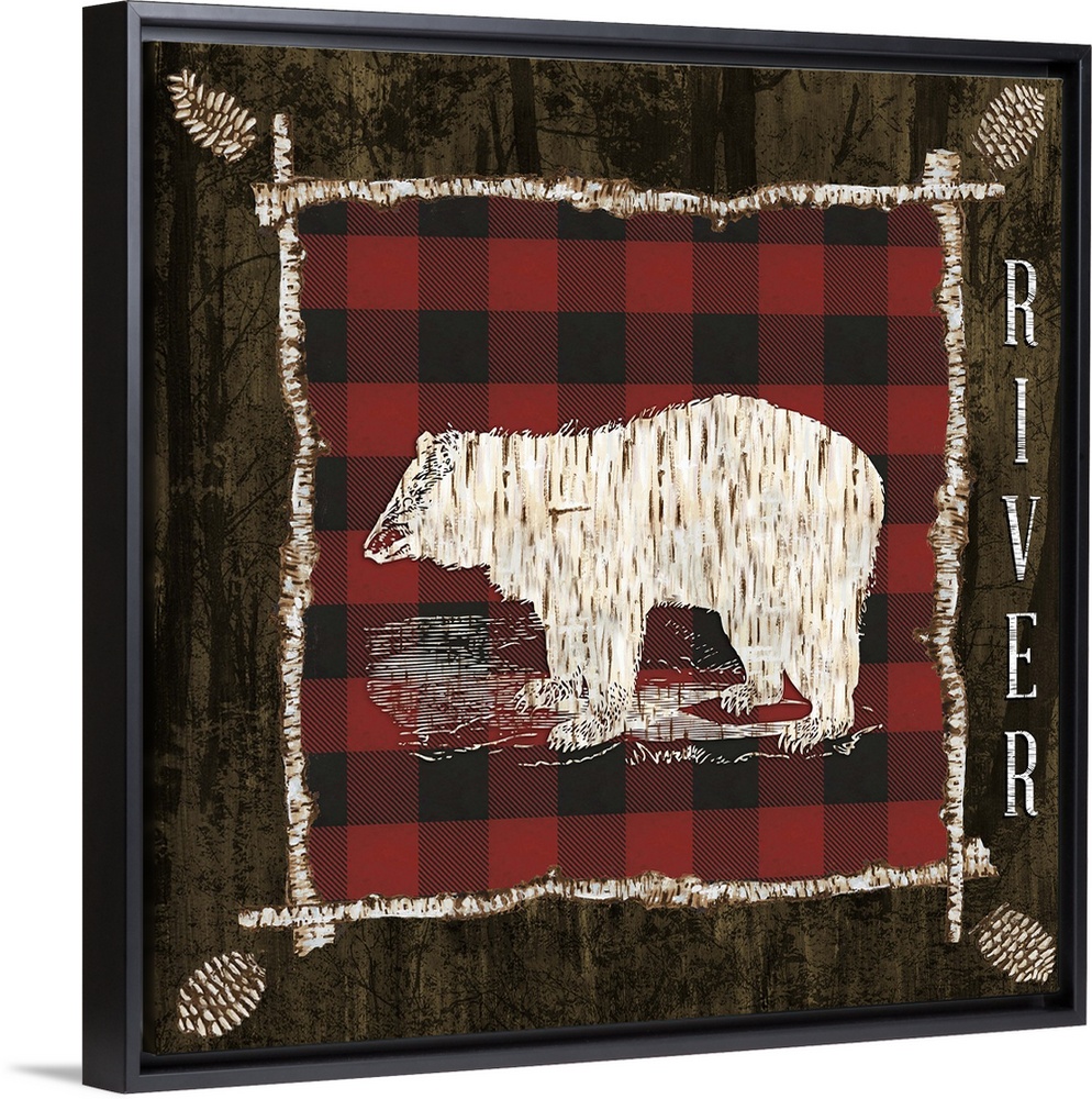 <p>The shape of a bear with a birch pattern on a red flannel.</p>