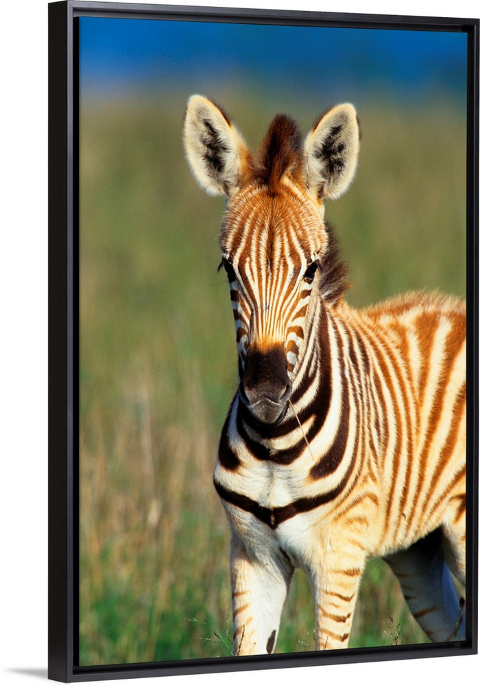 <p>Plains Zebra (Equus quagga) foal portrait, Tala Private Reserve, Midlands, KwaZulu-Natal, South Africa.</p>