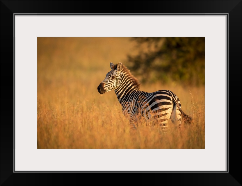 <p>Plains zebra (Equus quagga) stands in grass watching camera, Serengeti National Park; Tanzania</p>