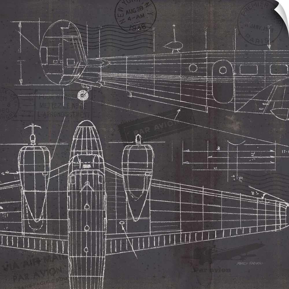 Art Blueprints Decorative Art Marco Fabiano Graphic Art Illustrations Man Cave Wall Art Transportation Airplane