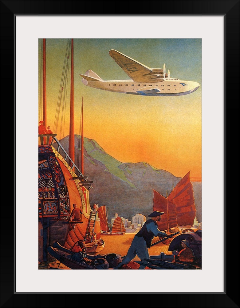 Art Harbor P.G. Lawler China Hong Kong Airplane Boat Vintage Art