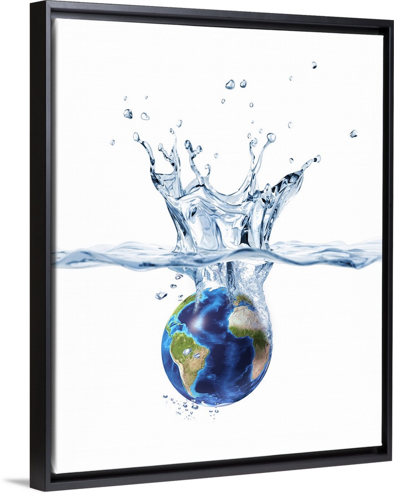 <p>Planet Earth falling into clear water, forming a crown splash.</p>
