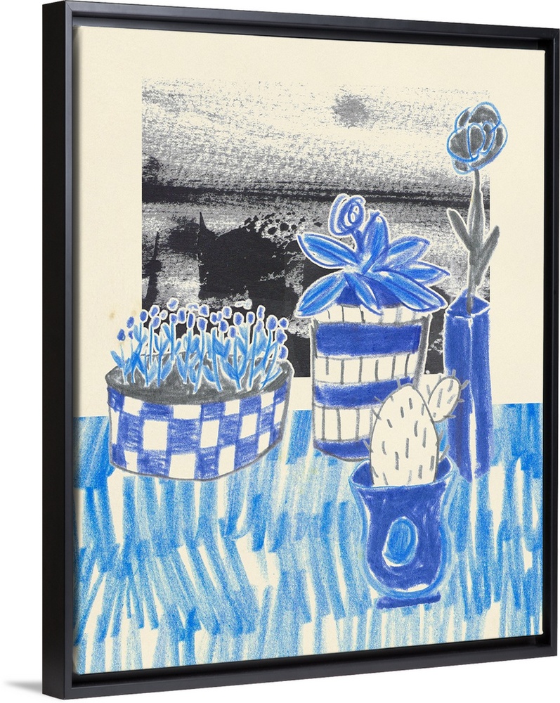 Art Blue Wall Art Decorative Art Drawing Florals Cactus Succulents Still Life Melissa Wang