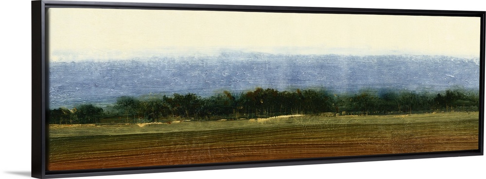 <p>Contemporary painting of an open field of farmland ready for planting.</p>