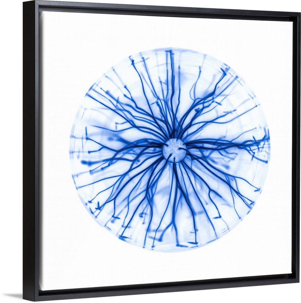 <p>Light streamers inside a plasma globe, negative image. A plasma globe is a glass sphere filled with a gas at low pressure. In the centre is a metal ball charged with electricity. When the voltage is high enough, the electricity discharges across the sphere to the glass wall. The discharge ionises the gas along its path, causing it to emit light.</p>
