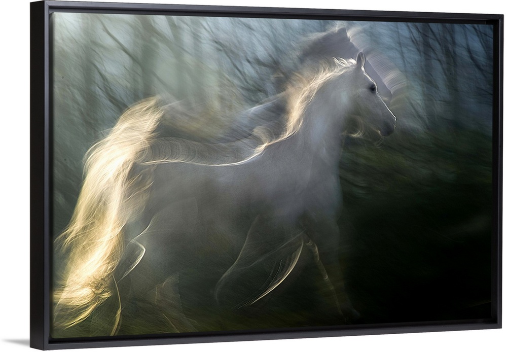 <p>Multiple exposure photograph of a white horse standing in a forest.</p>