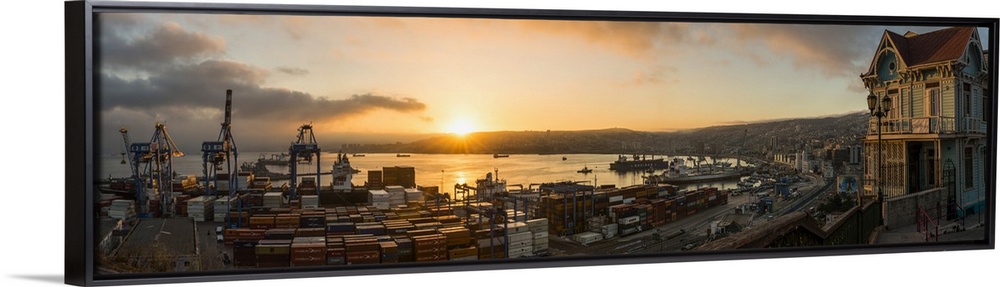 <p>View of city and ports at dawn from Paseo 21 de Mayo, Playa Ancha, Valparaiso, Central Coast, Chile.</p>